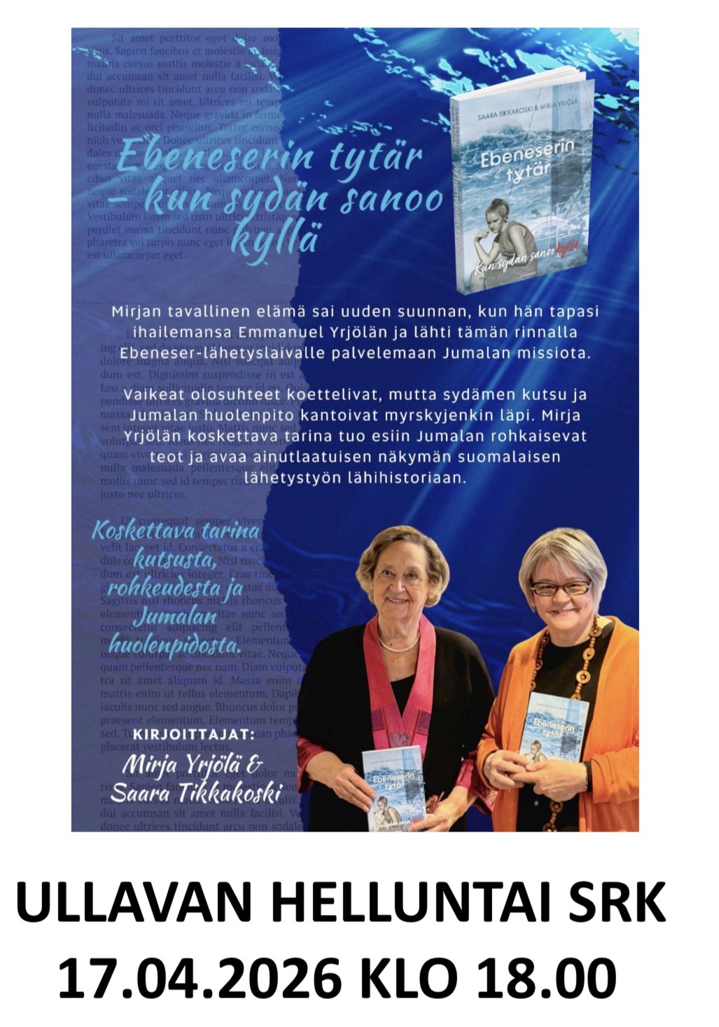 Pe 17.4. Klo 18.00 Mirja Yrjölä vierailu, Ebeneserin tytär